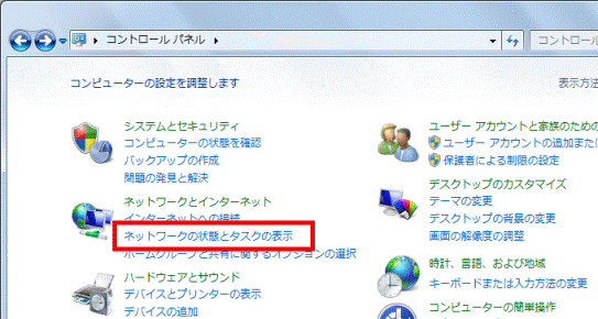 「ネットワークの状態とタスクの表示」をクリックします。