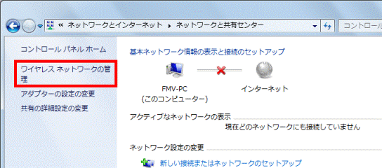 「ワイヤレスネットワークの管理」をクリックします。
