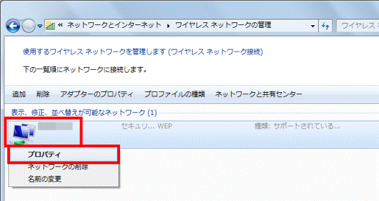 - 「ワイヤレスネットワークの管理」が表示されます。