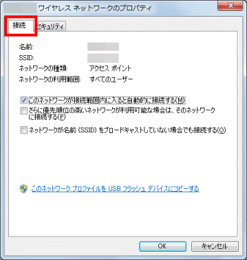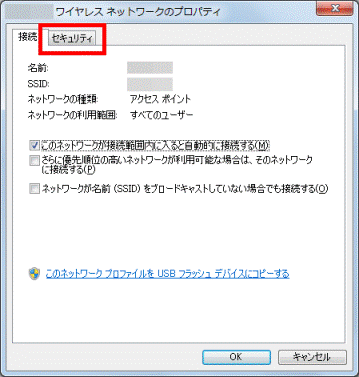 - 「(プロファイル名)ワイヤレスネットワークのプロパティ」が表示されます。