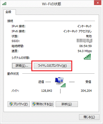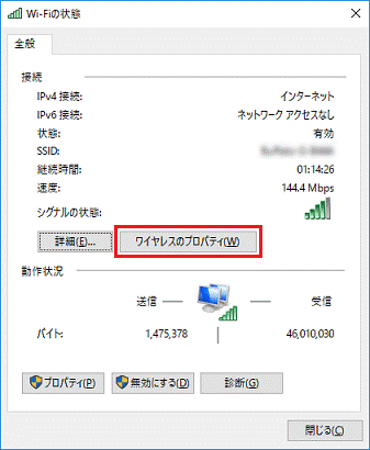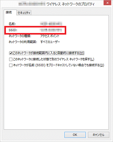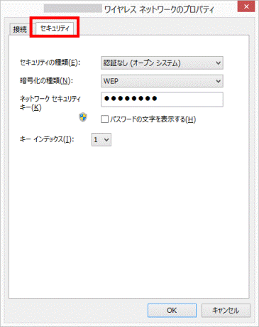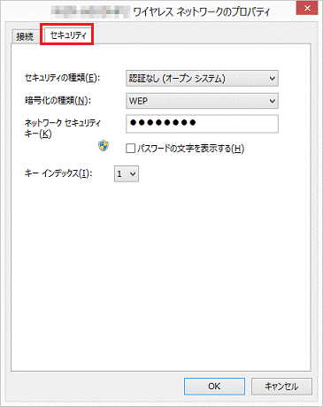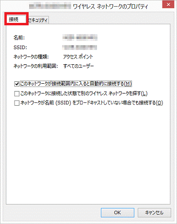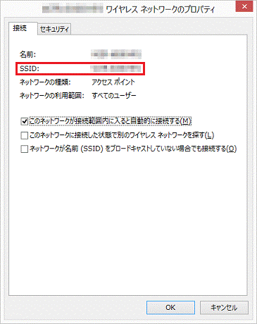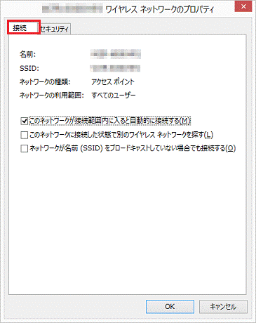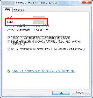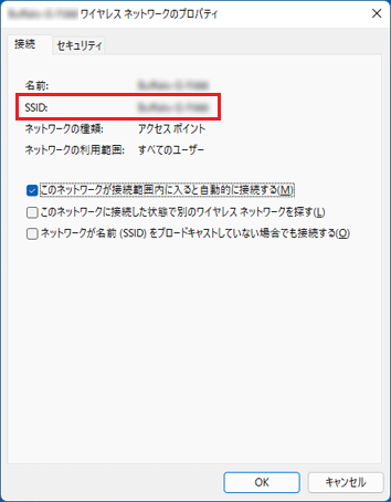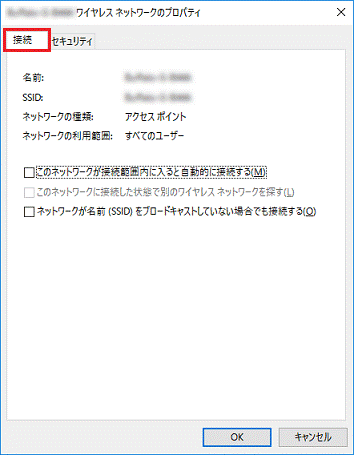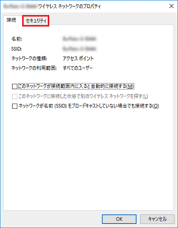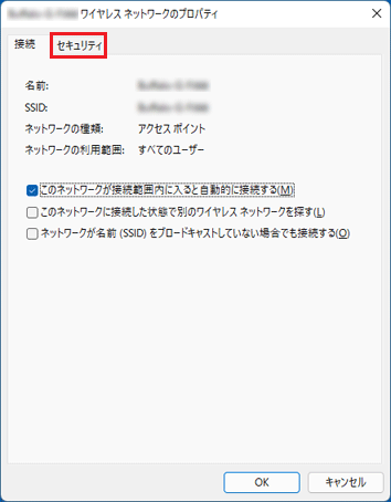 - 「(SSID)ワイヤレスネットワークのプロパティ」が表示されます。