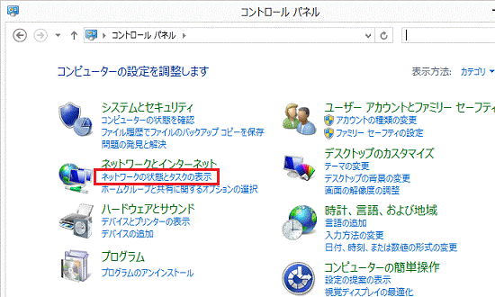 - 「ネットワークとインターネット」の「ネットワークの状態とタスクの表示」をクリックします。
