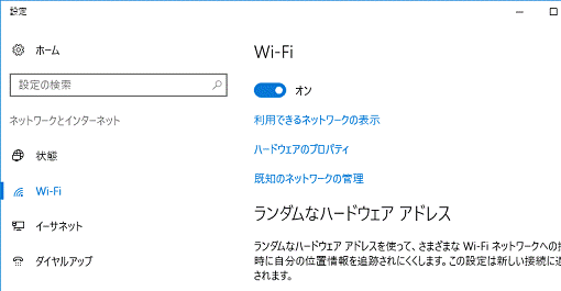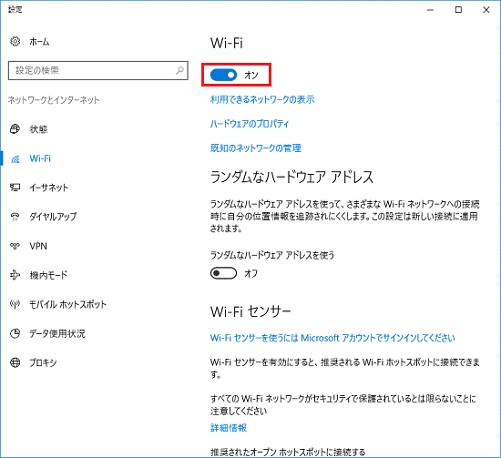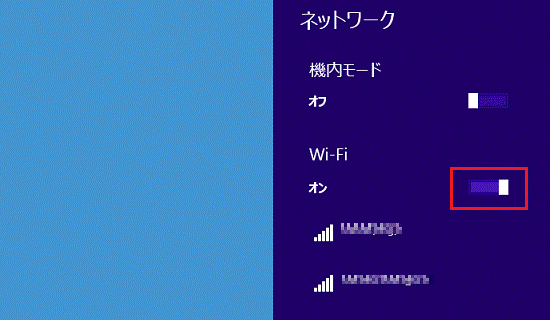 - 「Wi-Fi」のスイッチをクリックして、オンにします。