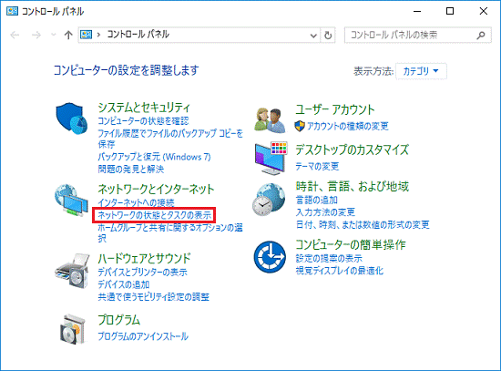 - 「ネットワークの状態とタスクの表示」をクリックします。