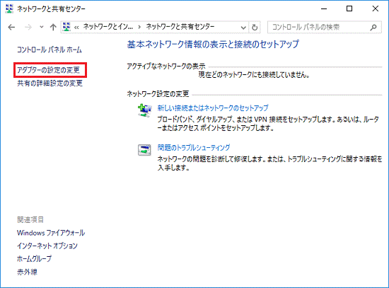 - 「アダプター設定の変更」をクリックします。