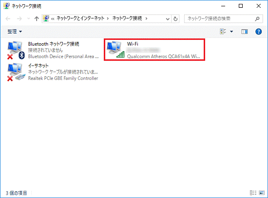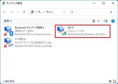 - 「ネットワーク接続」の「Wi-Fi」をダブルクリックします。