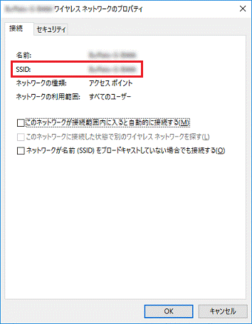 - 「SSID:」の右側に表示されている文字列(SSID)を確認します。