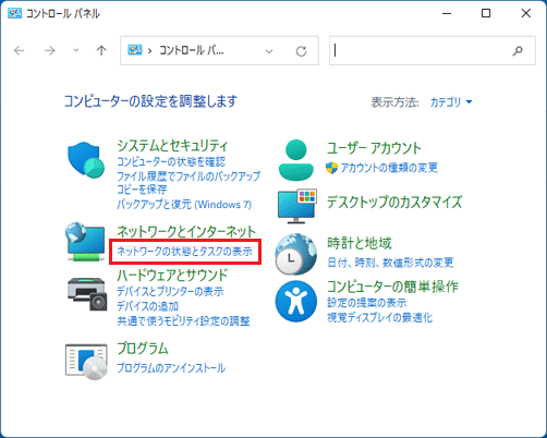 - 「ネットワークと共有センター」が表示されます。