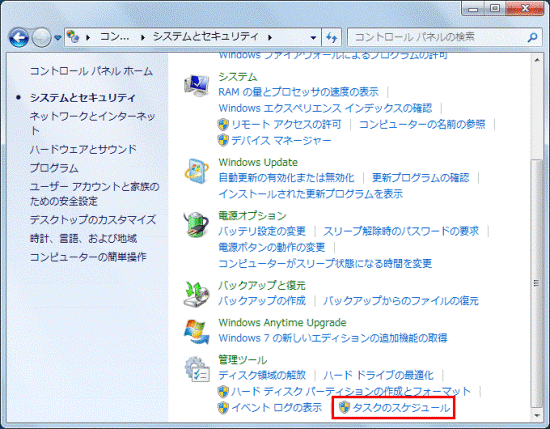 - 「システムとセキュリティ」をクリックします。