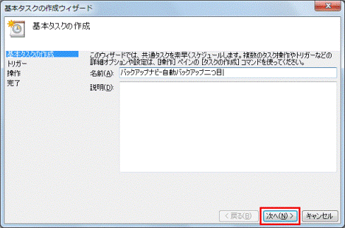 「説明」の欄には、これから設定する内容についての説明を入力できます。 - 「次へ」ボタンをクリックします。