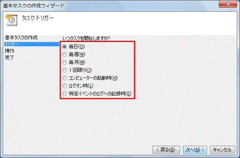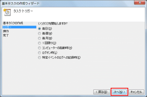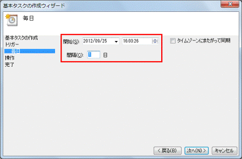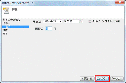 (「毎日」を選択した場合の画面例) - 「次へ」ボタンをクリックします。