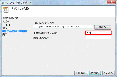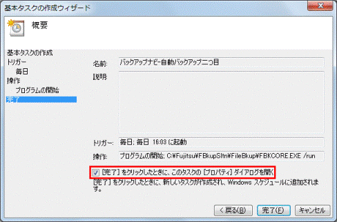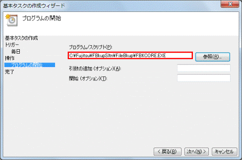 - 「プログラム/スクリプト」欄に「C:¥Fujitsu¥FBkupSltn¥FileBkup¥FBKCORE.EXE」と表示されていることを確認します。