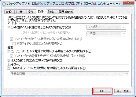 自動バックアップの設定を解除するときは、タスクのスケジュールから登録した、2つ目の自動バックアップの設定を手動で削除します。