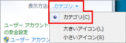 表示方法が「大きいアイコン」または「小さいアイコン」の場合は、「大きいアイコン」または「小さいアイコン」をクリックし、「カテゴリ」をクリックしてください。