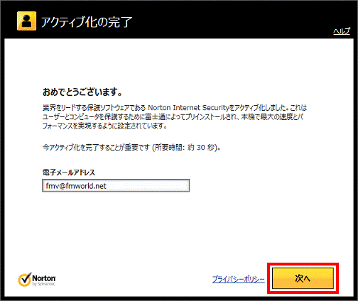 Nortonアカウントの設定方法などの詳細については、提供元の株式会社シマンテックへお問い合わせください。 - 本Q&Aで紹介している手順が完了するまでは、ホームページを閲覧したりメールを送受信したりしないでください。