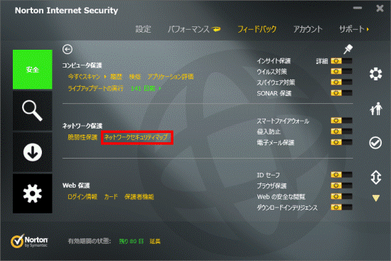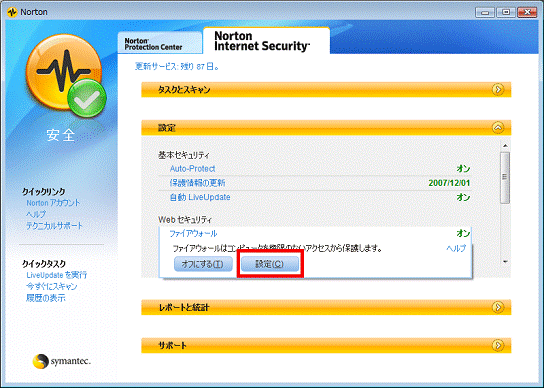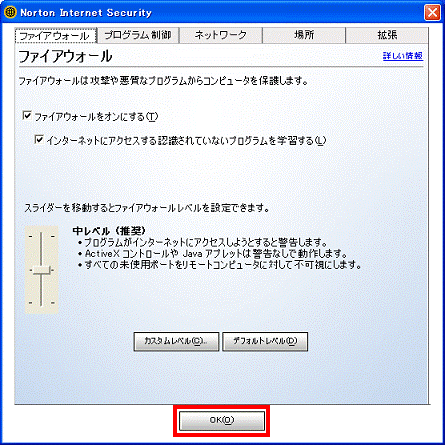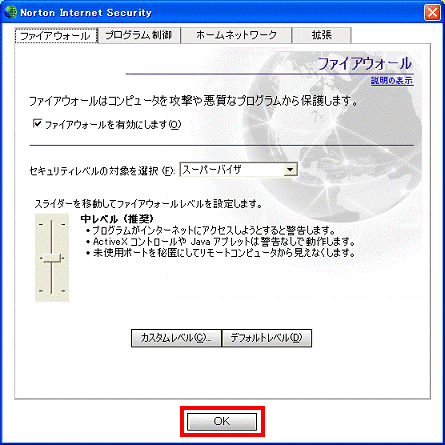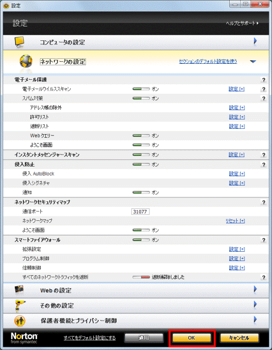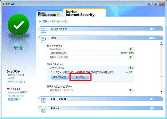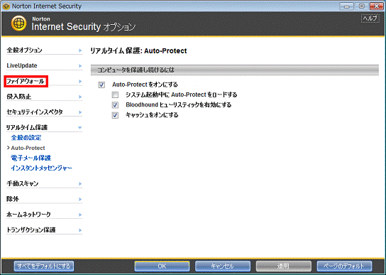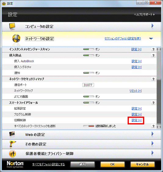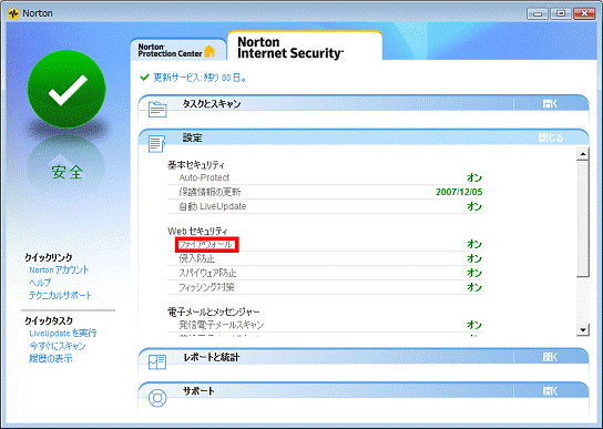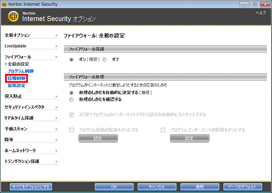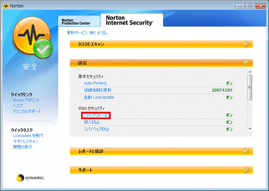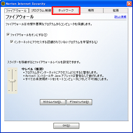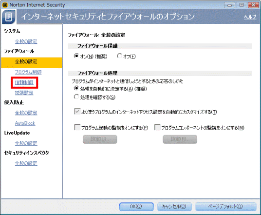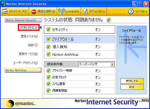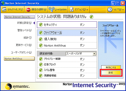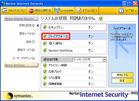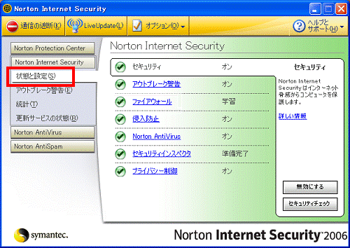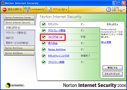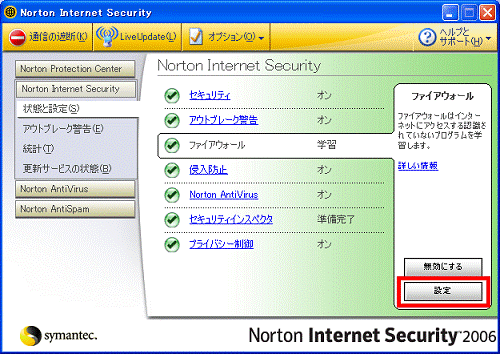 この場合は、次の手順で、Norton Internet Security の設定を確認します。