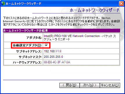 - 「自動設定用に選択されたアダプタを設定しました。」と表示されます。