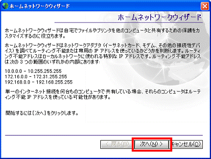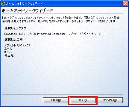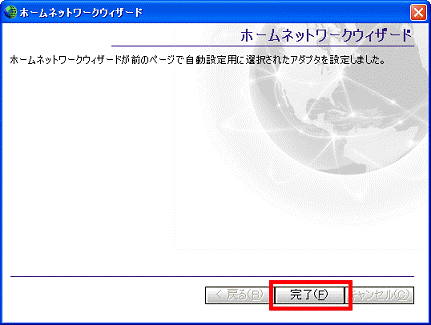 - 「ホームネットワークウィザードの結果」と表示されます。