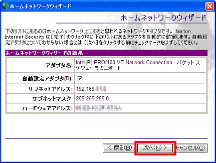 - 「ネットワークアダプタが見つかりました」(または「ホームネットワークウィザードの結果」)と表示されます。