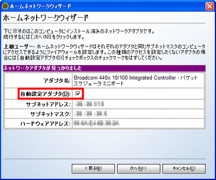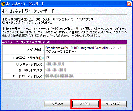 - 「ホームネットワークウィザード」で設定した情報が表示されます。