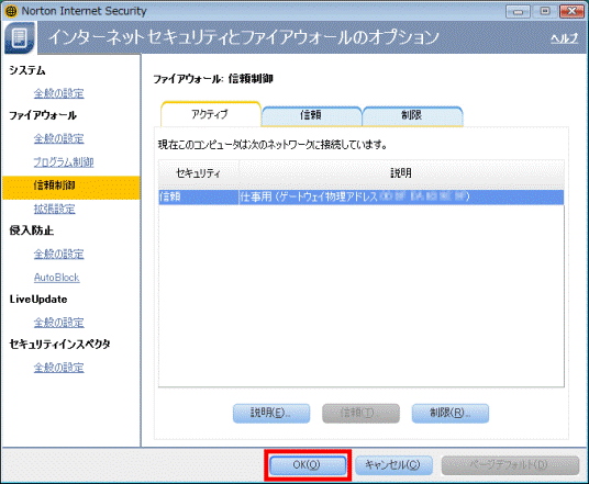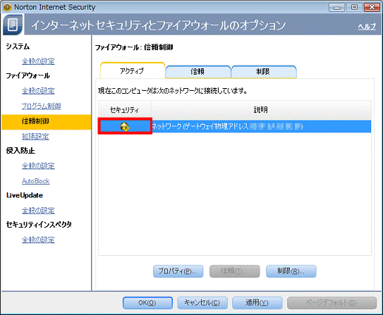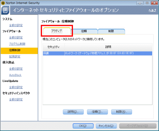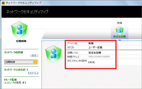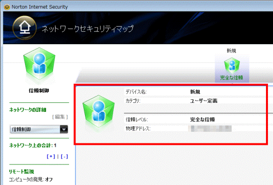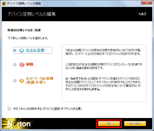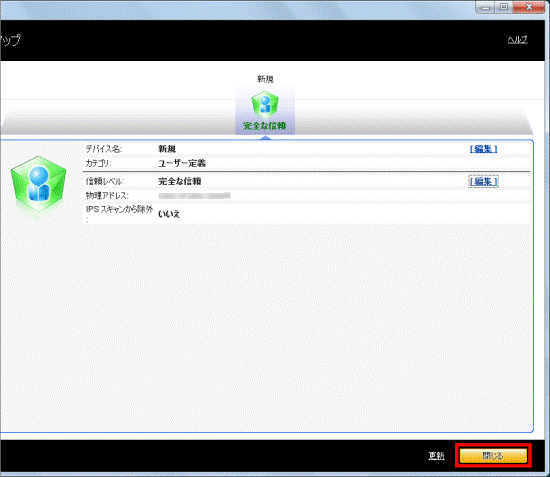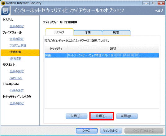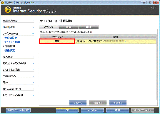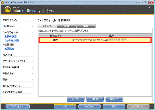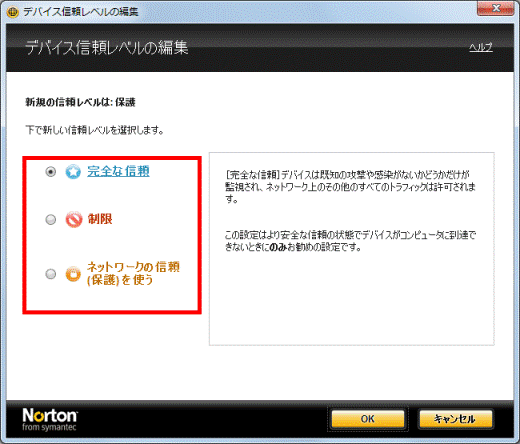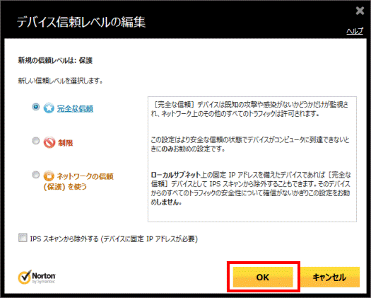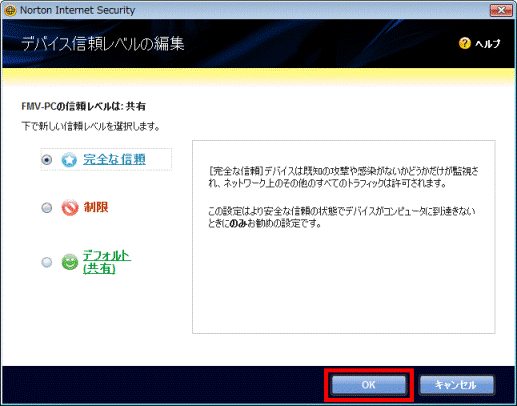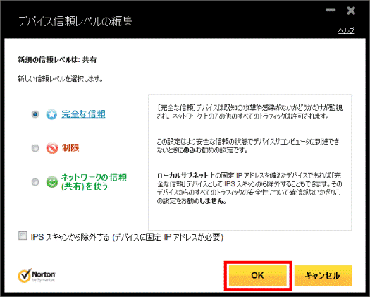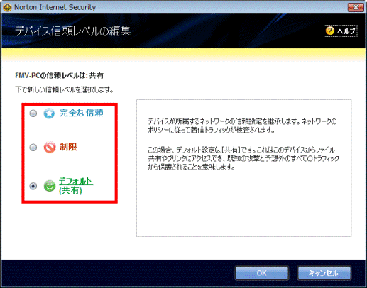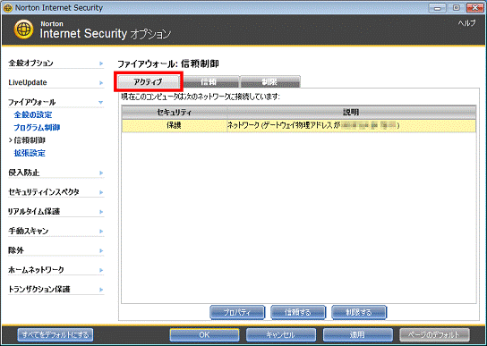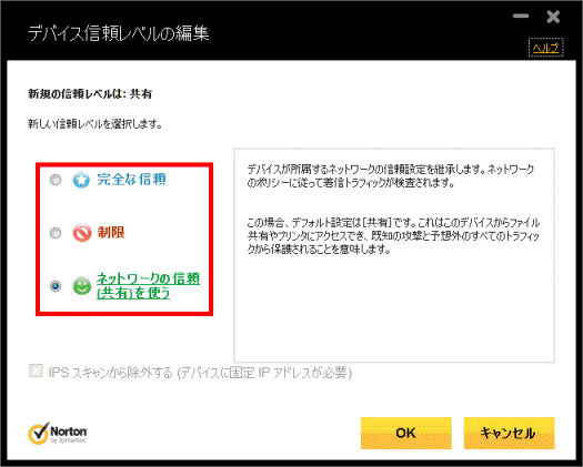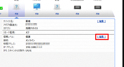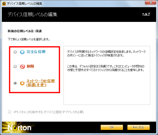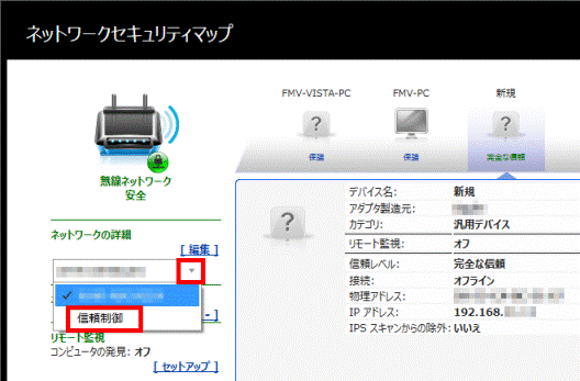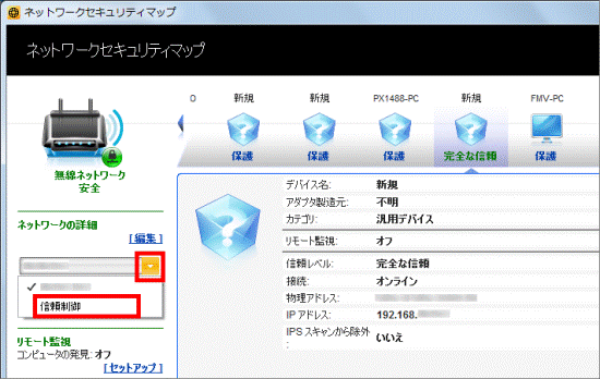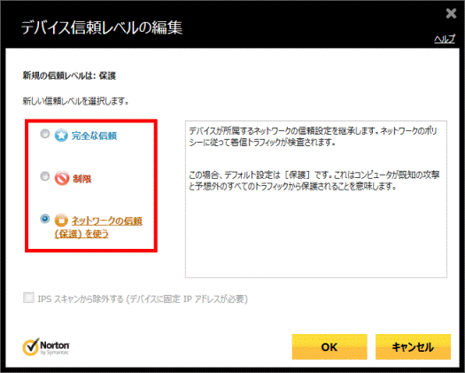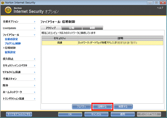 設定されたデバイスはパソコンにアクセスできなくなります。 - ネットワークの信頼(保護)を使う