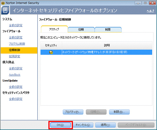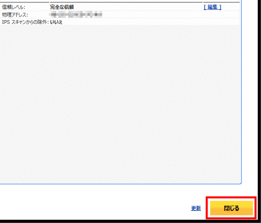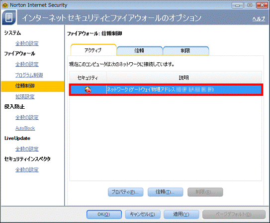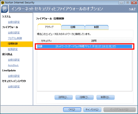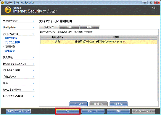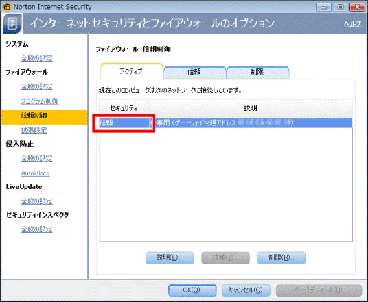 選択したネットワークの先頭の項目が、「信頼」に変わったことを確認します。