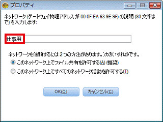 接続が許可されたネットワークは、ネットワークの信頼方法に応じて、先頭に次の文字が表示されます。- 指定したネットワークでファイルの共有を許可した場合