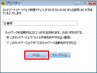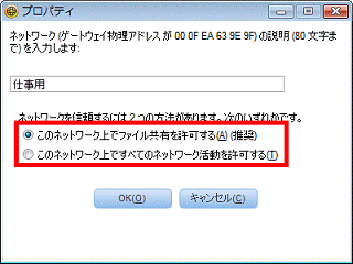 「共有」 - 指定したネットワークですべてのネットワーク活動を許可した場合
