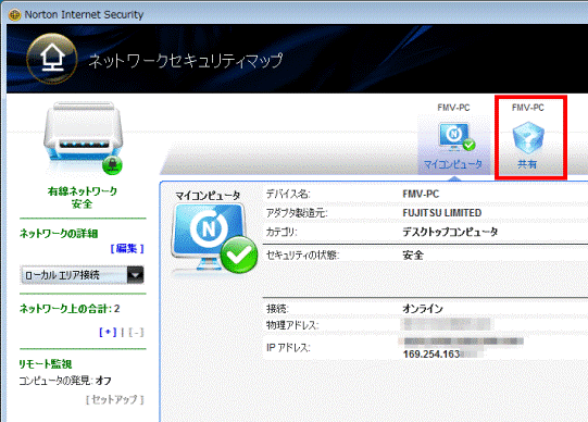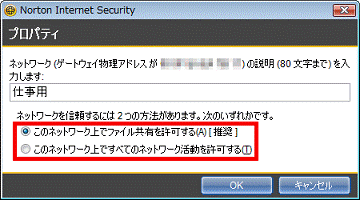 Norton Internet Security のセキュリティ機能の影響で、ネットワーク内の他のパソコンとファイルやフォルダーの共有ができなくなることがあります。