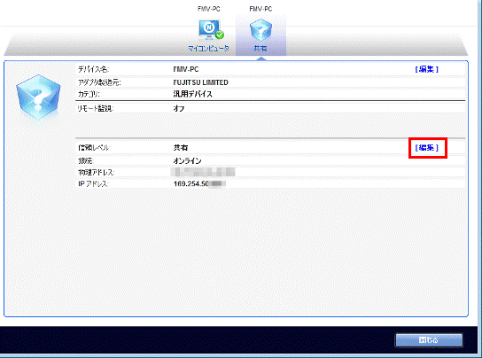 設定されたデバイスはパソコンにアクセスできなくなります。 - デフォルト(共有)