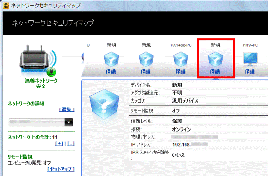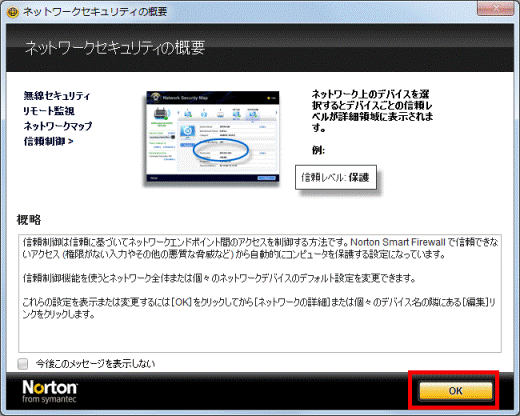 「ネットワークセキュリティの概要」が表示されない場合は、次の手順に進みます。 - 「ネットワークセキュリティマップ」と表示されます。