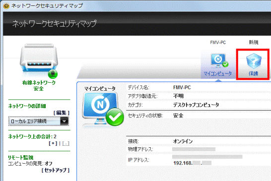 「ネットワーク保護」の「ネットワークセキュリティマップ」をクリックします。