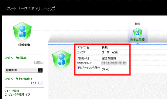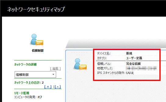 「ネットワークセキュリティの概要」が表示されない場合は、次の手順に進みます。 - 「ネットワークセキュリティマップ」が表示されます。