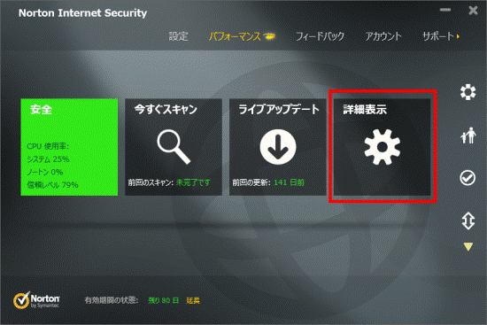 - 「スタート」ボタン→「すべてのプログラム」→「Norton Internet Security」→「Norton Internet Security」の順にクリックします。