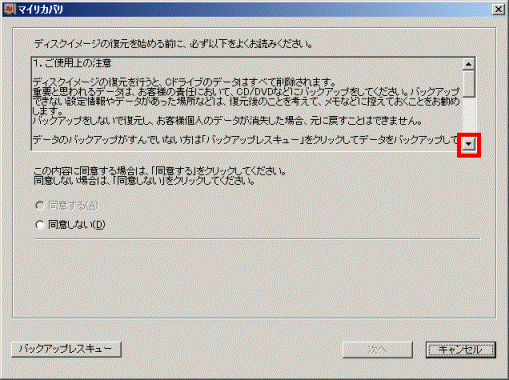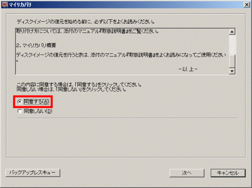 - 「ディスクイメージの復元を始める前に、必ず以下をよくお読みください。」と表示されます。