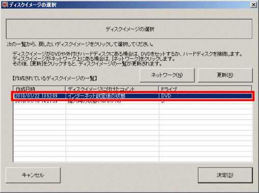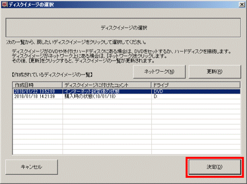 [マイリカバリ] エラーメッセージが表示され、作成したディスクイメージからリカバリできません。(2010年春モデル)