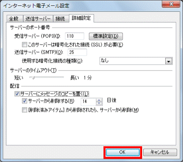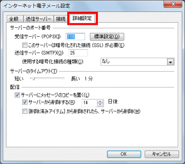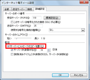 - 「配信」欄の「サーバーにメッセージのコピーを置く」をクリックし、チェックを付ける、または外します。