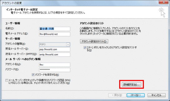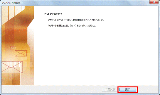 - 「完了」ボタンをクリックし、「アカウントの変更」を閉じます。