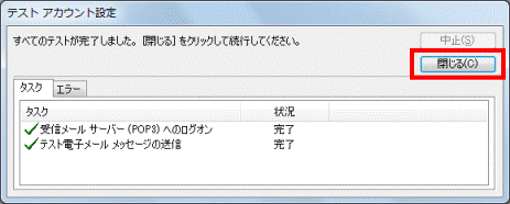送受信テストが完了したら「閉じる」ボタンをクリックします。