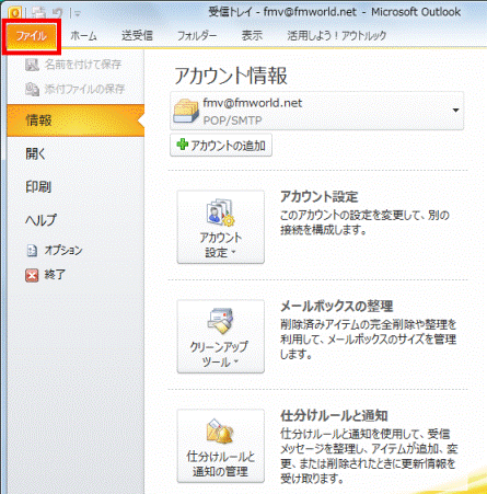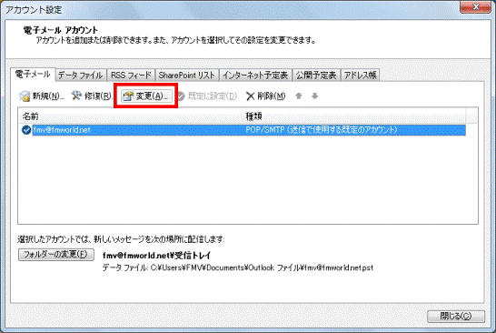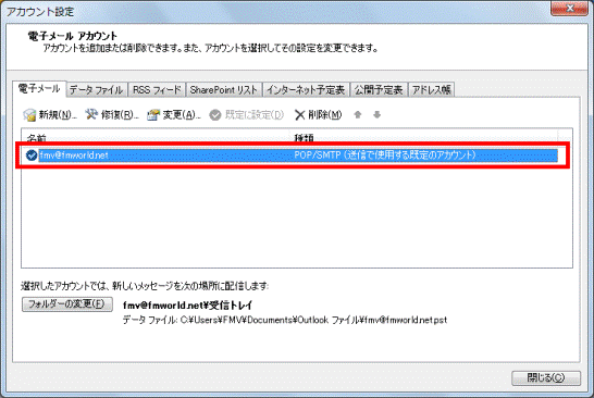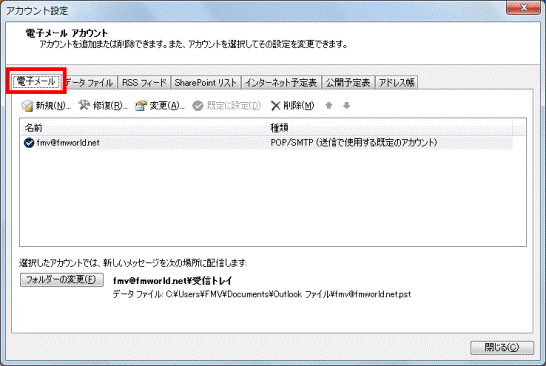 - 「電子メール」タブの中の確認したいメールアカウントをクリックします。