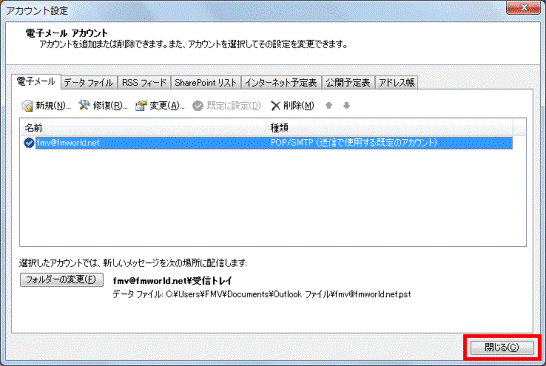 - 「閉じる」ボタンをクリックし、「アカウント設定」を閉じます。