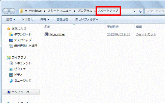 - 「スタートアップ」フォルダーが表示されたことを確認します。