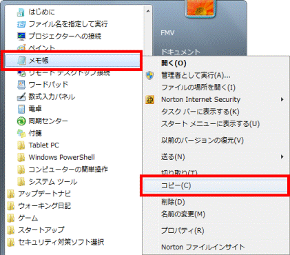 - スタートアップに追加したいアプリケーションを右クリックし、表示されるメニューから「コピー」をクリックします。