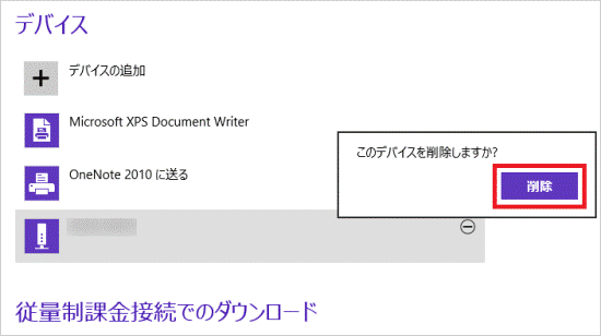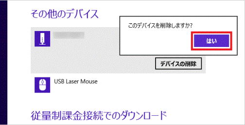 その場合は、データの送受信が行われていないことを確認してから、リムーバブルディスクを取り外してください。 - 「デバイスの削除」ボタンをクリックします。