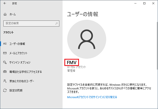 「管理者」と表示されていない場合は、管理者権限がありません。