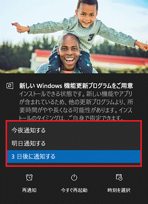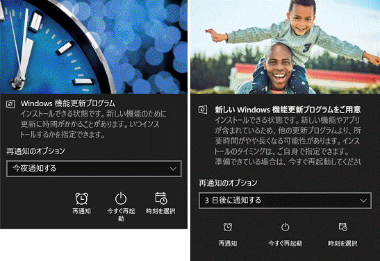 - Windows 10 Fall Creators Update(バージョン 1709)のインスールの準備が完了したときにも、この通知が表示されることがあります。