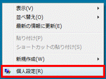 - デスクトップの何もないところで右クリックし、表示されるメニューから、「個人設定」をクリックします。