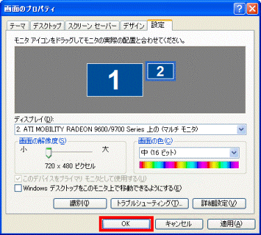 - 「OK」ボタンをクリックし、「画面のプロパティ」を閉じます。