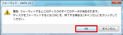 - 「フォーマットが完了しました。」と表示されたら、「OK」ボタンをクリックします。