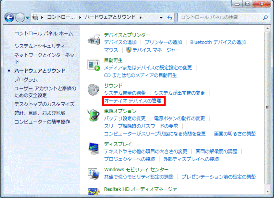 [Windows 7] マイク端子とヘッドホン端子を、ライン端子に変更する方法を教えてください。